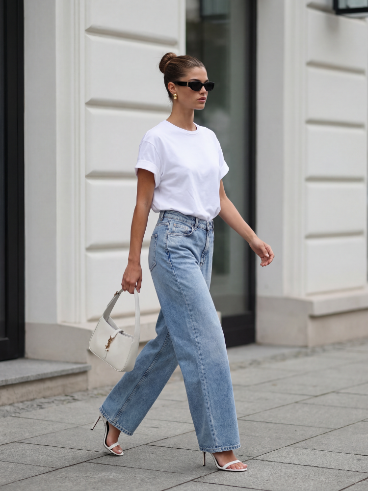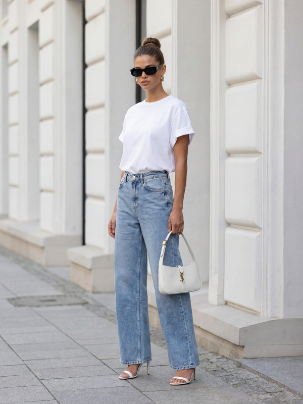 Jeansowe spodnie Sheldon o kroju wide leg, to najmodniejsza propozycja w tym sezonie. Zapinane na praktyczny ekspres i guzik. Posiadają liczne kieszenie, a w talii szlufki. Wysoki stan znakomicie podkreśli talię. W zestawie pasek. Producent Cocomore. Prezentacja produktu wykorzystuje wizualizacje AI.