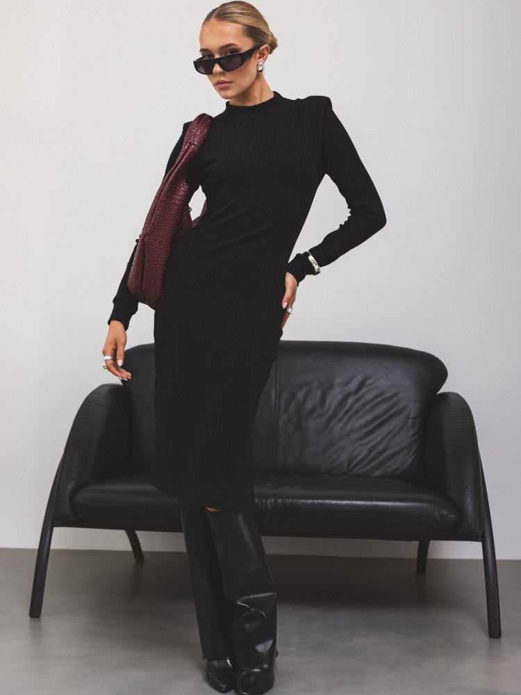 Rewelacyjna sukienka Angelina to model o długości midi, wykonany z wysokiej jakości prążkowanego, bawełnianego materiału z domieszką elastanu. Taliowany krój, stójka oraz subtelne rozcięcie z boku uwydatnią atuty sylwetki. Poduszki na ramionach zapewiną idealne ułożenie. Polski producent Cocomore.
