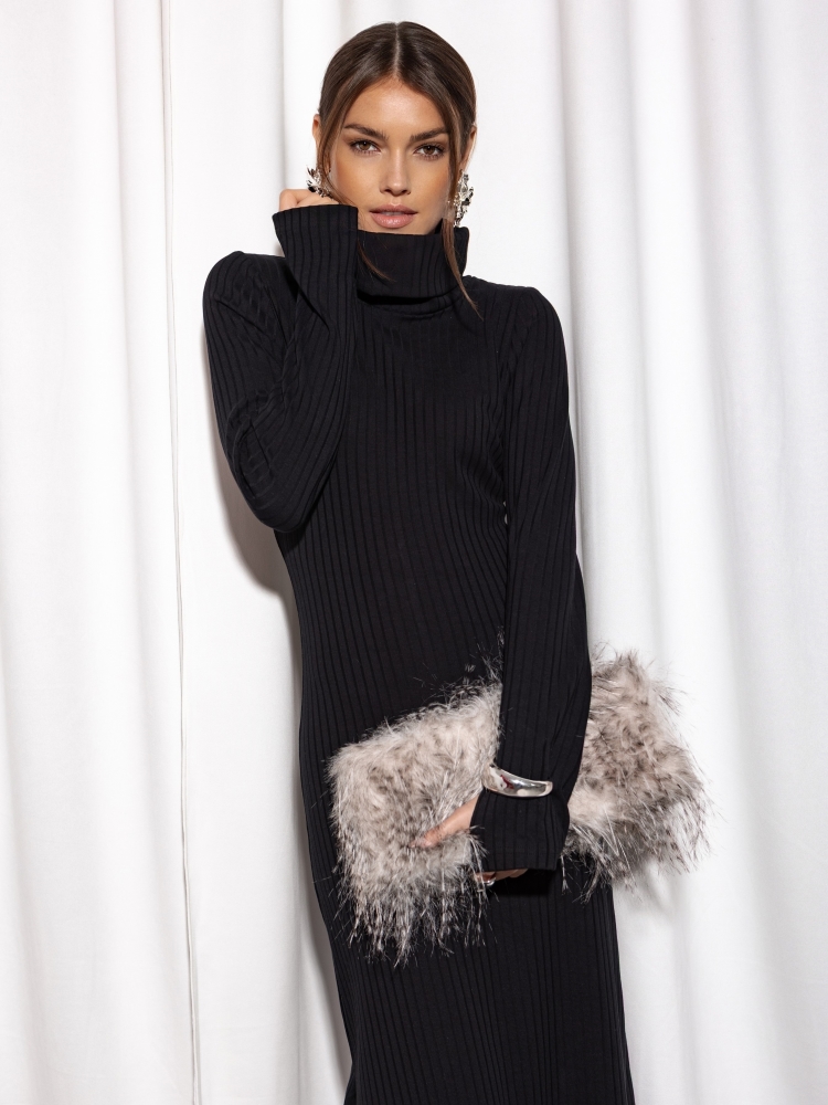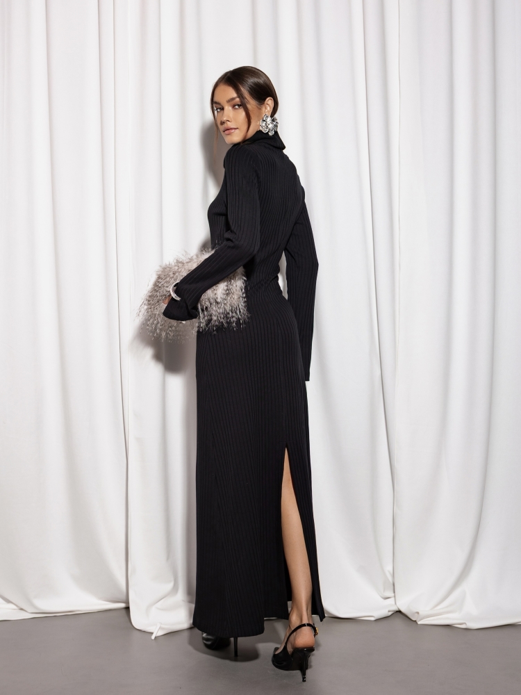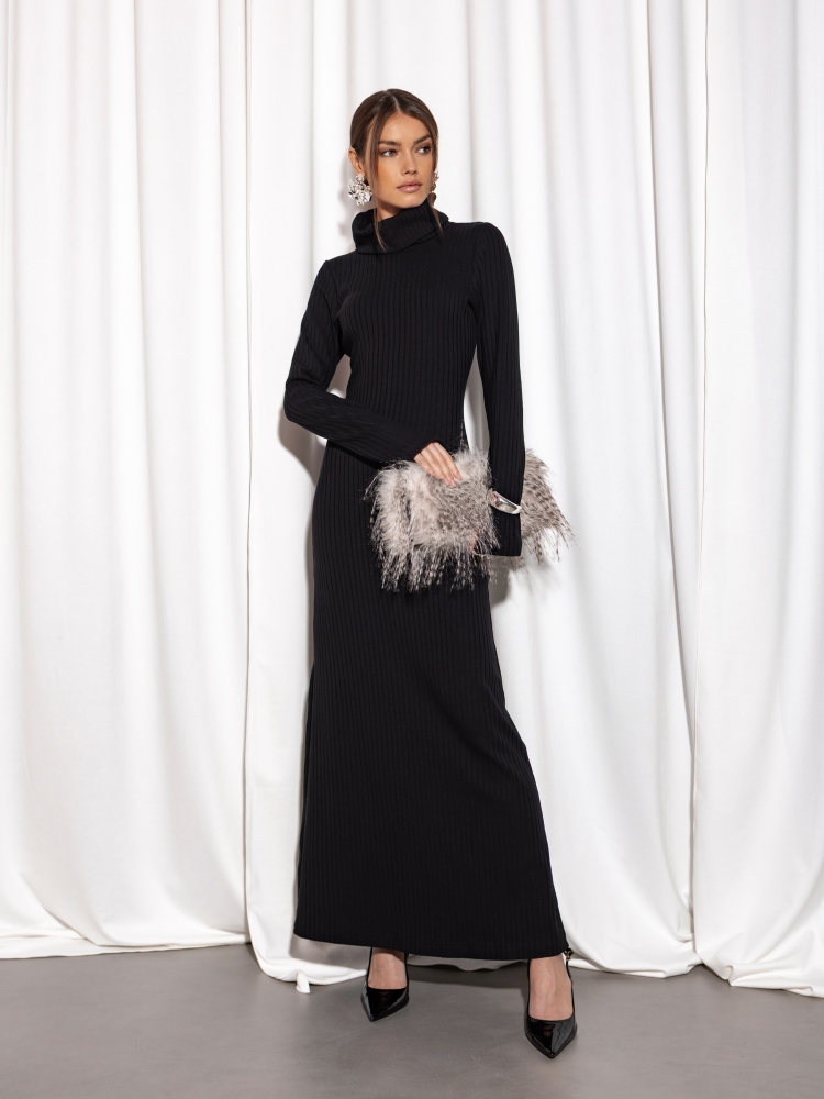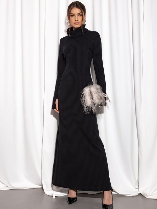Lekko taliowana, rozszerzana ku dołowi sukienka Georgiana o długości maxi. Wykonana z wysokiej jakości prązkowanego materiału. Charakteru dodaje jej obszerny golf oraz rękawy zakładane na palec. Całość równoważy subtelne rozcięcie z tyłu. Świetnie sprawdzi się w nadchodzącym sezonie. Polski producentt Cocomore.