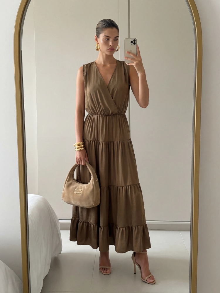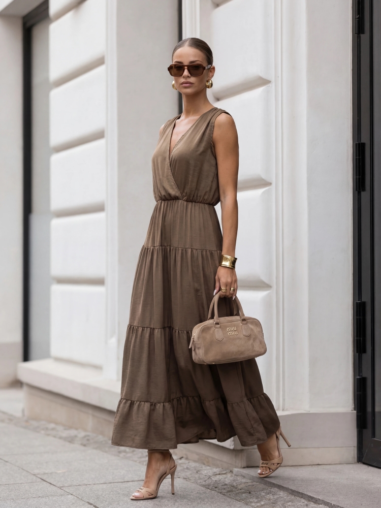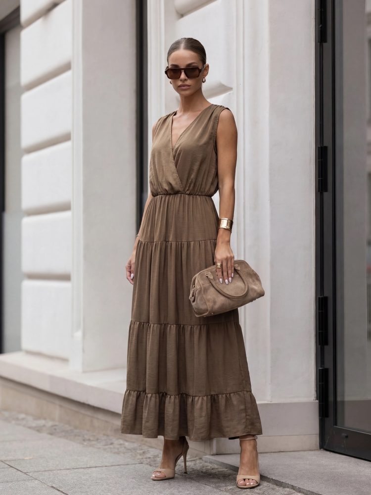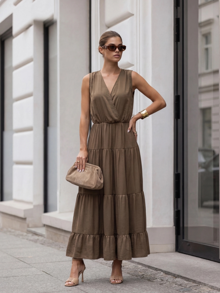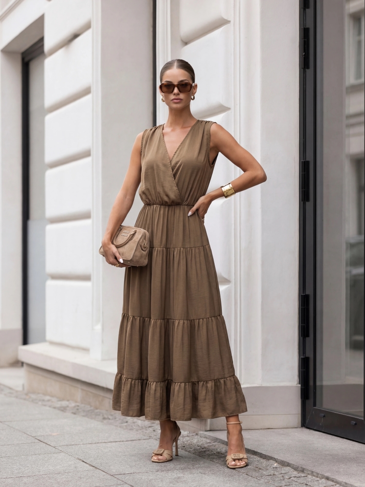 Wyjątkowa sukienka Lindisa o długości maxi, wykonana z wysokiej jakości materiału. Kobiecy dekolt na zakładkę oraz marszczenia na ramionach uwydatnią atuty sylwetki. Dodatkowo w talii znajduje się ściągacz, który zapenwni idealne dopasowanie do sylwetki. Polski producent Cocomore.