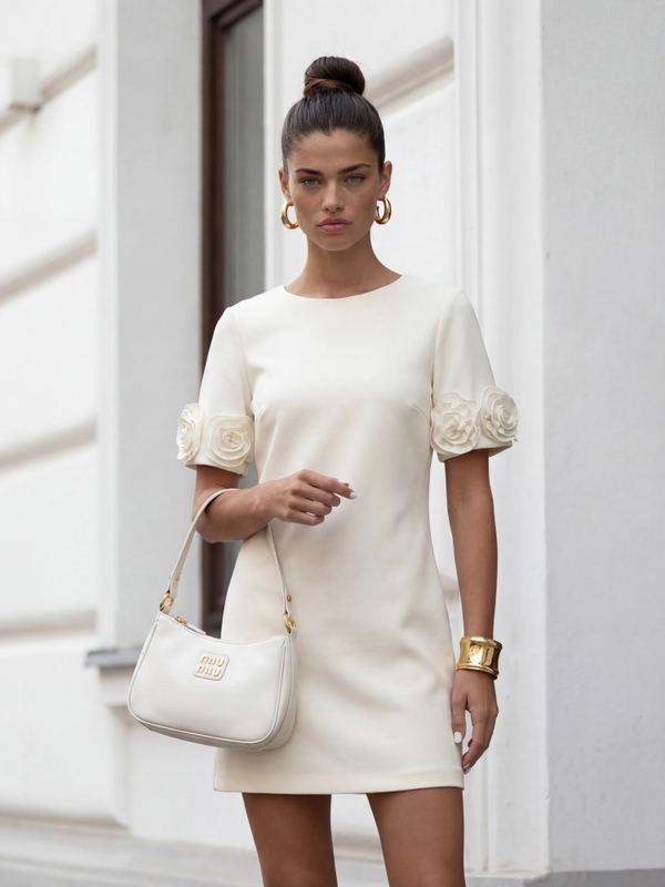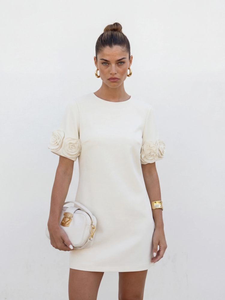 Przeurocza sukienka Seraphina o długości mini oraz taliowanym kroju, dzięki czemu pięknie podkreśli atuty sylwetki. Dodatkowo, rękawy zdobią naszyte kwiaty, które dodają całości uroku. Z powodzeniem sprawdzi się na nadchodzące okazji oraz na codzień. Polski producent Cocomore. Prezentacja produktu wykorzystuje wizualizacje AI.