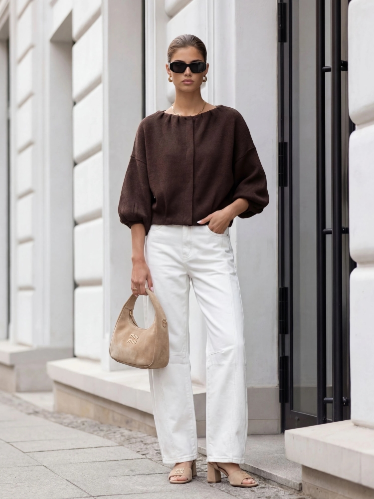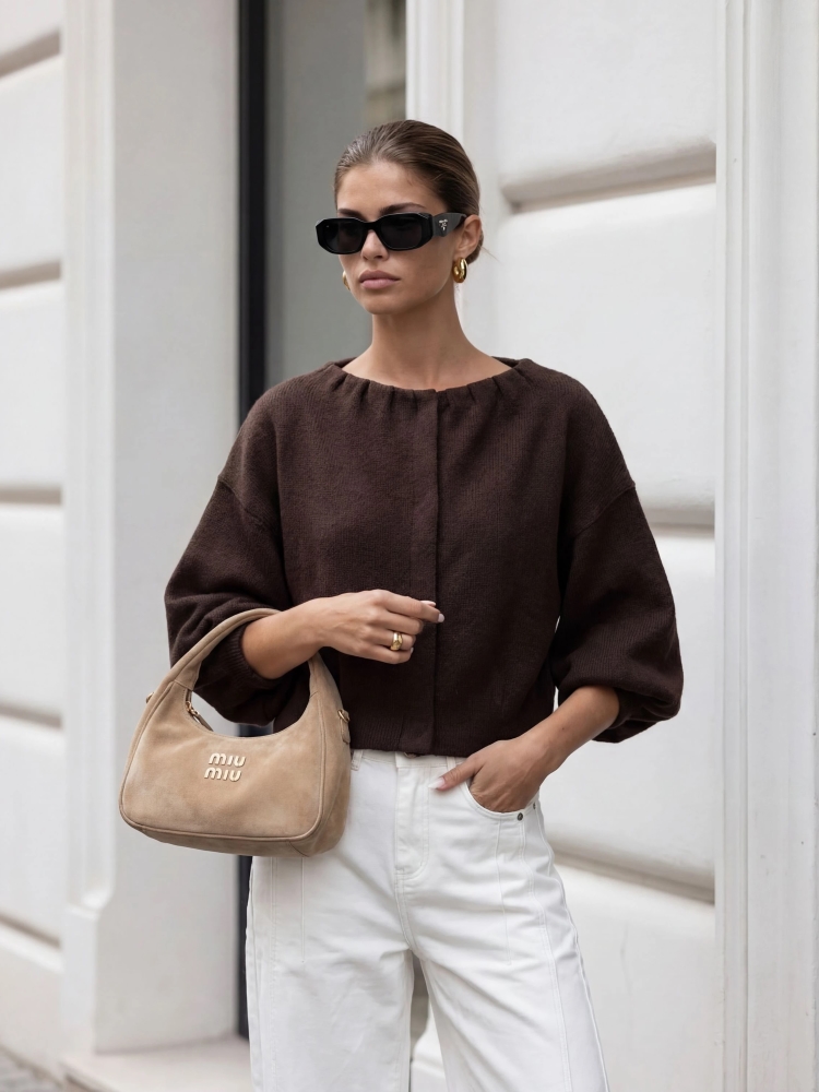 Fantastyczna, sweterkowa bomberka Wendy to modny i niebanalny zamiennik dla wiosennej kurtki. Oversie'owy krój oraz zapinanie na napę, zapewni wygodę podczas noszenia. Na dole z boku znajduje się naszywka producenta. Polski producent Cocomore. Prezentacja produktu wykorzystuje wizualizacje AI.