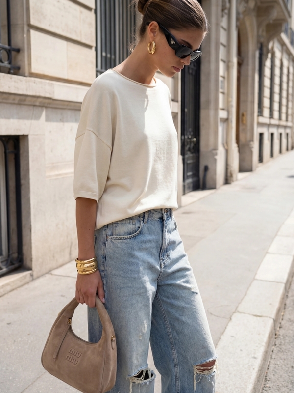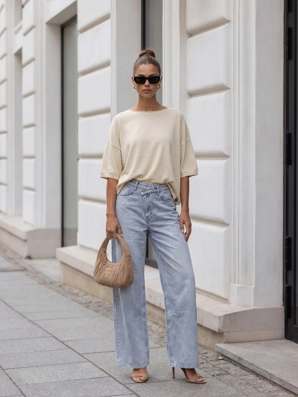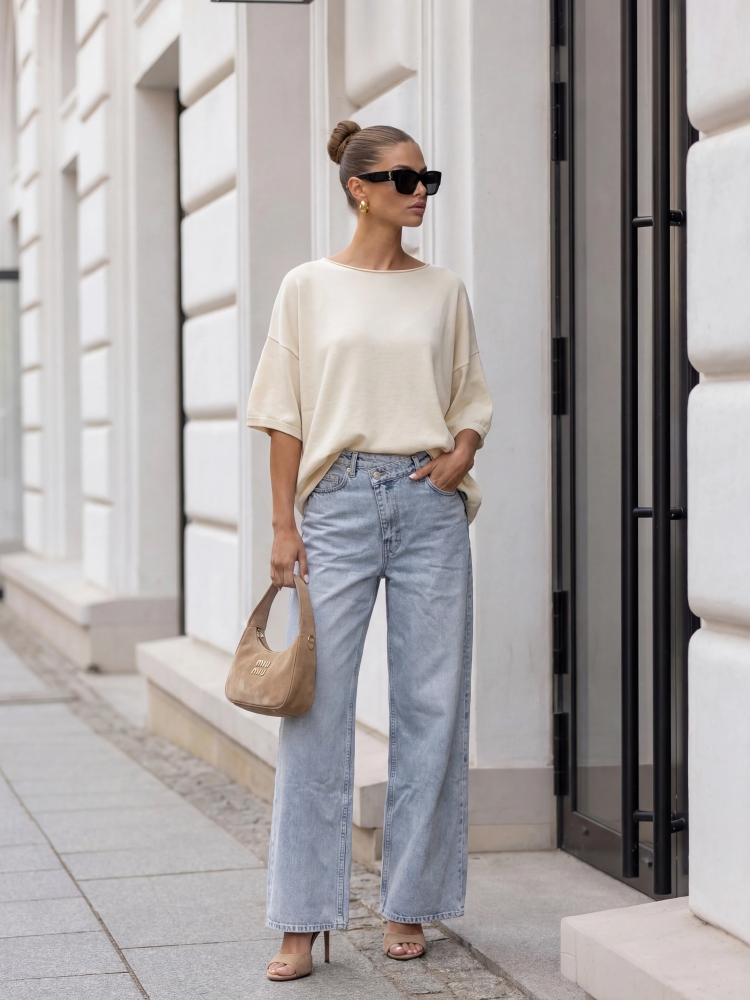Genialny sweter Agostino o oversize'owym kroju to świetna alternatywa dla klasycznych swetrów. Jego akcent podkreślają ściągacze na wykończeniach oraz naszywka z logo producenta na dole z boku. Polski producent Cocomore. Prezentacja produktu wykorzystuje wizualizacje AI.