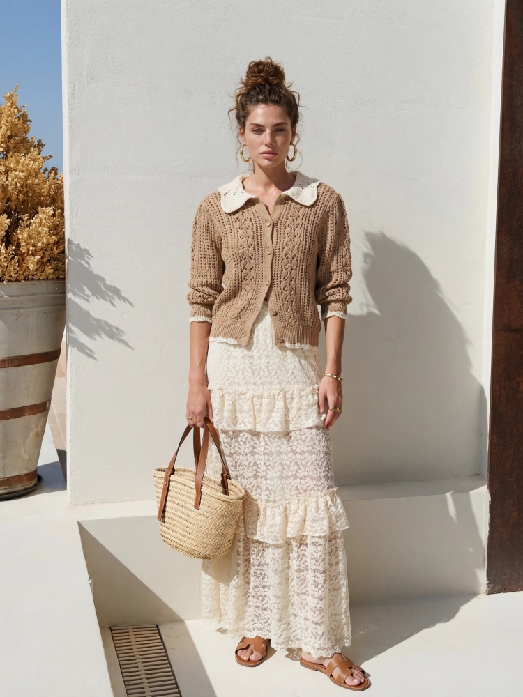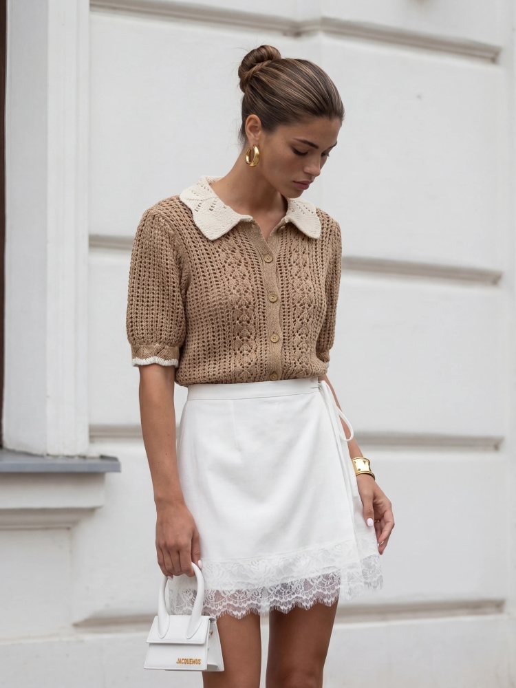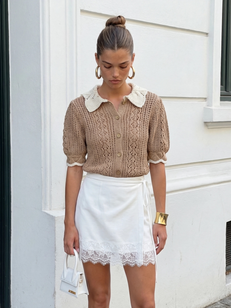 Sweter Angus to niezwykle dziewczęca propozycja o ażurowym splocie, która znakomicie sprawdzi się jako alternatywa dla klasycznej bluzki. Krój kardiganu zapewni wiele możliowści wystylizowania. Bufiaste rękawki z kontrastującym lampasem dodają mu uroku. Całość wieńczy ozdobny kołnierzyk. Polski producent Cocomore. Prezentacja produktu wykorzystuje wizualizacje AI.