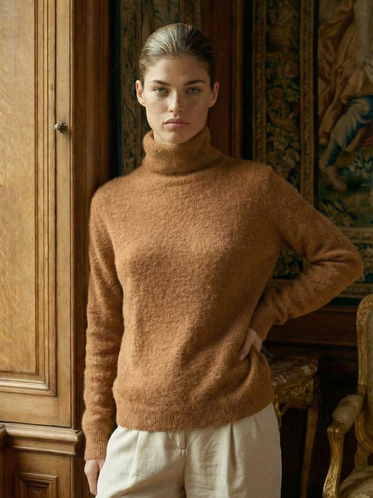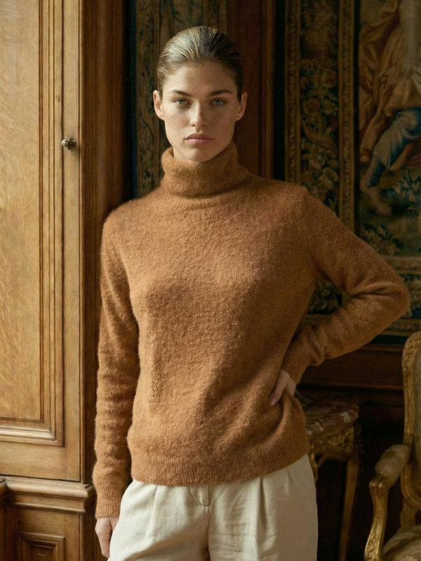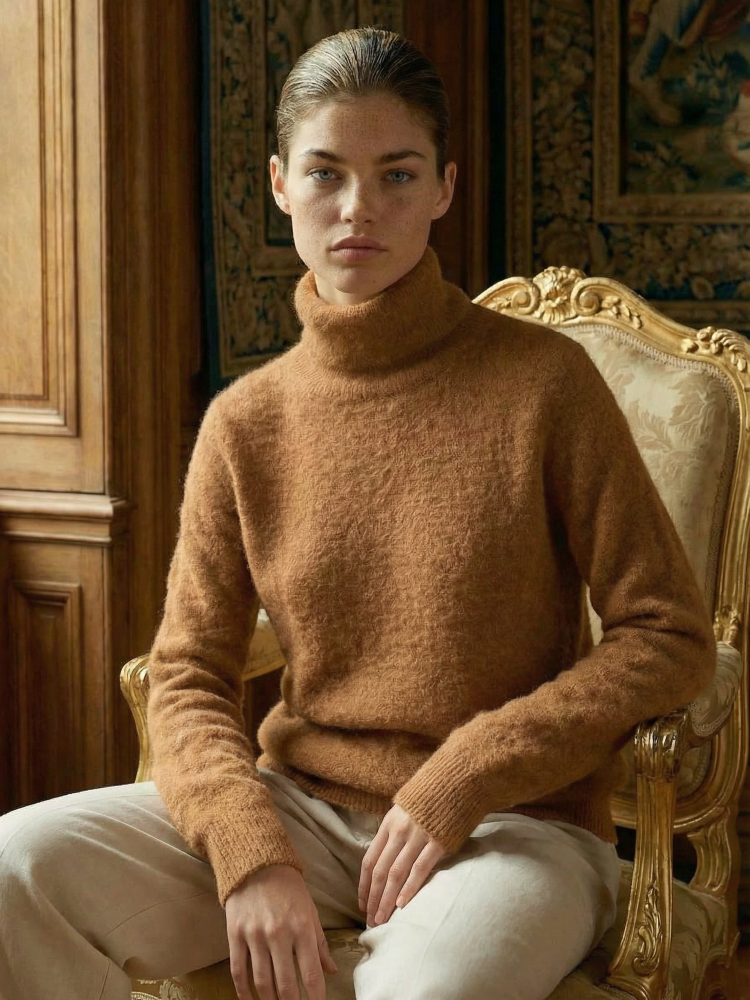 Miły w dotyku, elegancki sweterek Artem z najmodniejszym w tym sezonie golfem. Wykonany z przędzy typu „alpaka”. Na dole znajduje się ozdobna naszywka z logo producenta. Świetne uzupełnienie stylizacji zarówno do pracy, jak i na wieczór. Made in Poland. Producent Cocomore.