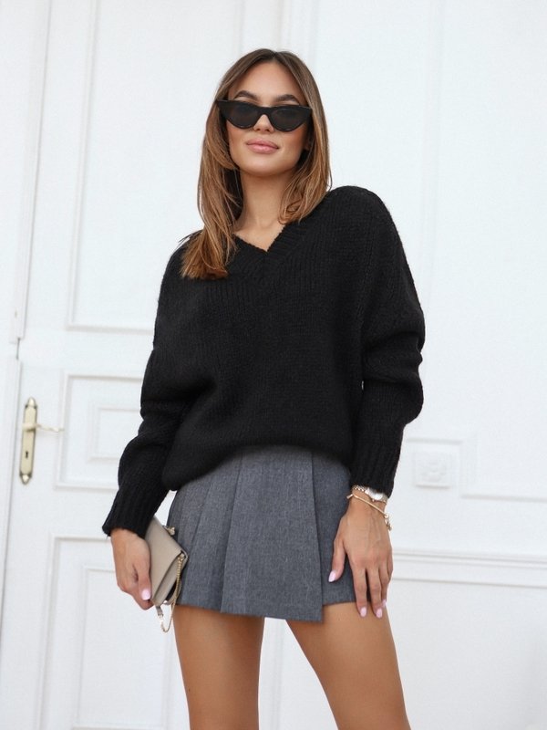 Efektowny, casualowy sweter Ashley w modnym kolorze. Na przodzie i na plecach znajduje się głęboki V-dekolt. Super miękki w dotyku, model na lata. Made in Poland.