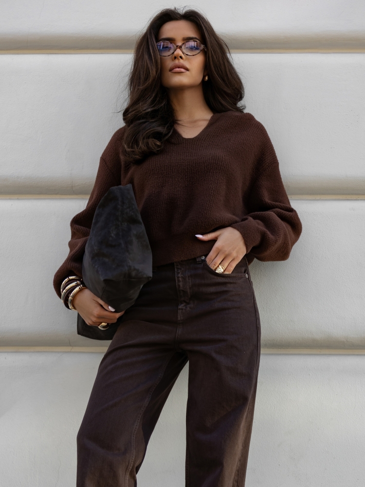 Sweter Branwen to elegancki i wygodny sweter z V-dekoltem, który ma szeroki kołnierzyk opadający na ramiona, nadając mu unikalnego wyglądu. Na wykończeniach  znajdują się ściągacze. Wykonany z elastycznego materiału, zapewniającego swobodę ruchu.To doskonały wybór dla osób ceniących zarówno elegancję, jak i wygodę w ubraniach. Producent Cocomore.