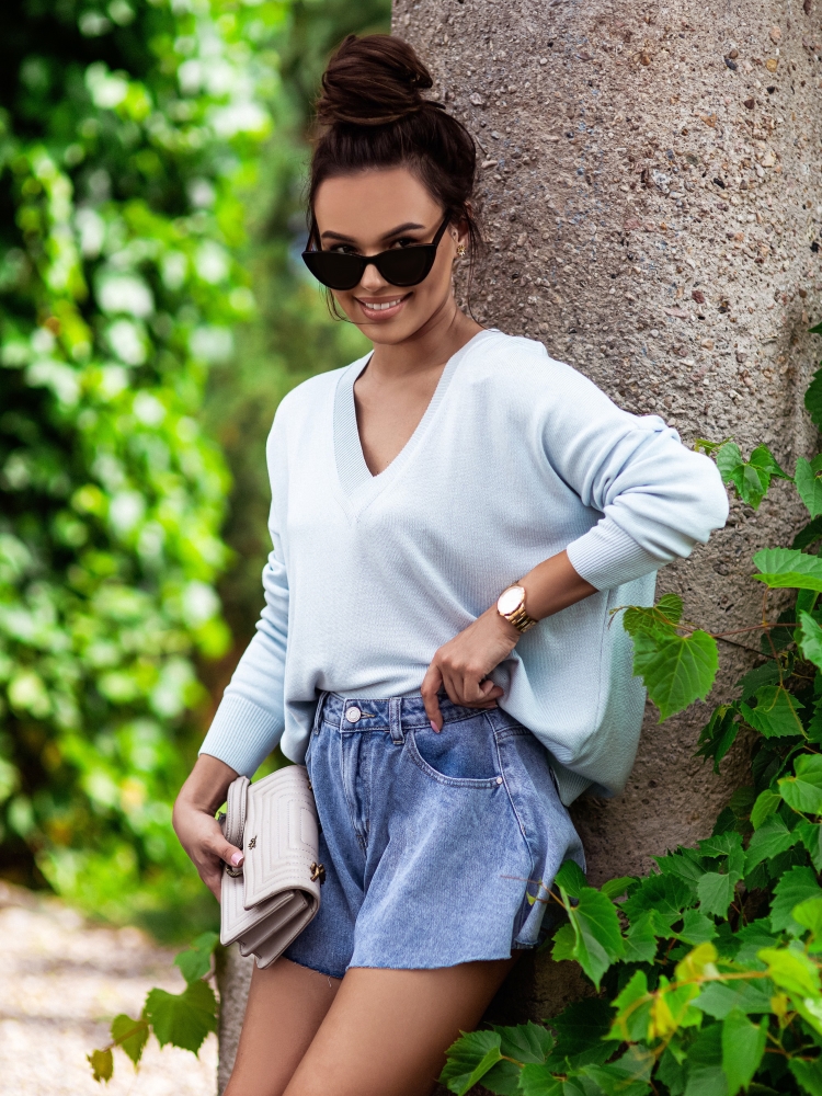 Ponadczasowy sweterek Classico, wykonany z wysokiej jakości przędzy z głębokim V-dekoltem. Świetnie skomponują się z każdą stylizacją. Dodatkowym atutem jest ozdobna blaszka z logo i luźny krój. Made in Poland.