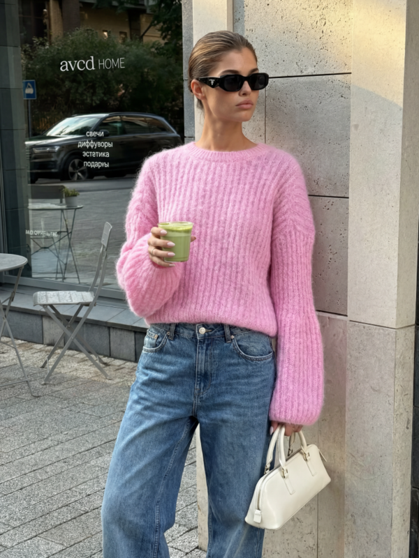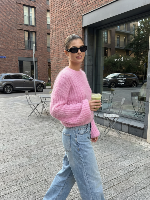 Genialny sweter Cornelius, wykonany z grubej, mięsistej przędzy. Krótki krój podkreśla ściągacz umiejscowiony na samym dole. Jego charakterystycznym elementem są rękawy o rozszerzanym kroju, które nadają mu unikalnego wyglądu. Polski producent Yarn. Prezentacja produktu wykorzystuje wizualizacje AI.