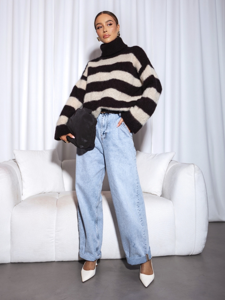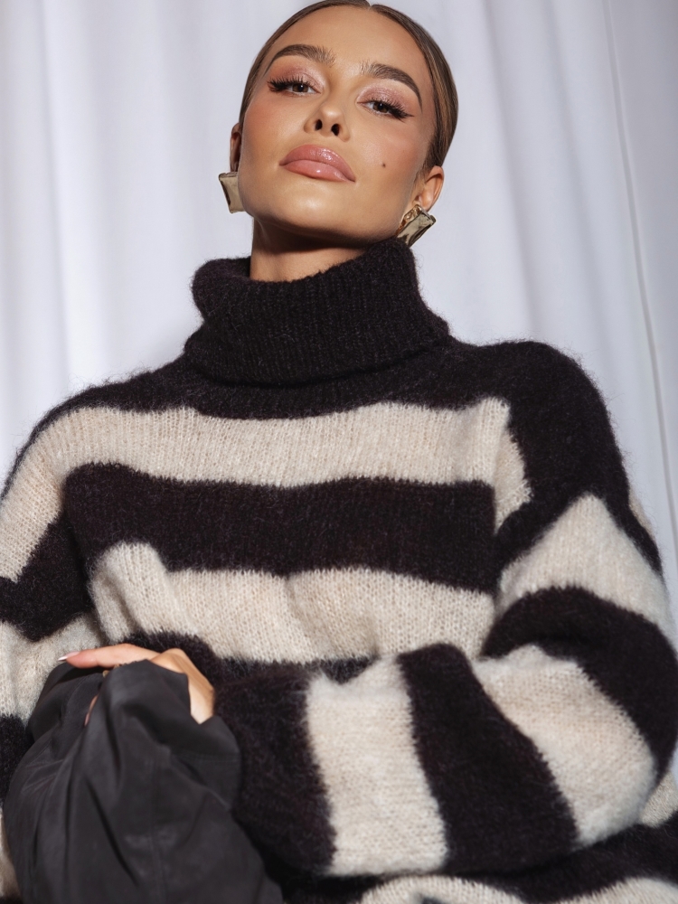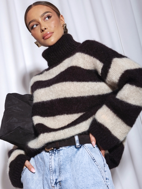 Wyjątkowy sweter Crispin , wykonany wysokiej jakości przędzy. Niezwykle przyjemny w dotyku. Luźny krój zapewni komfort noszenia. Dzięki ściągaczom na wykończeniach, możemy dopasować długości według własnych upodopań. Całość wieńczy komfortowy golf. Polski producent Yarn Studio.