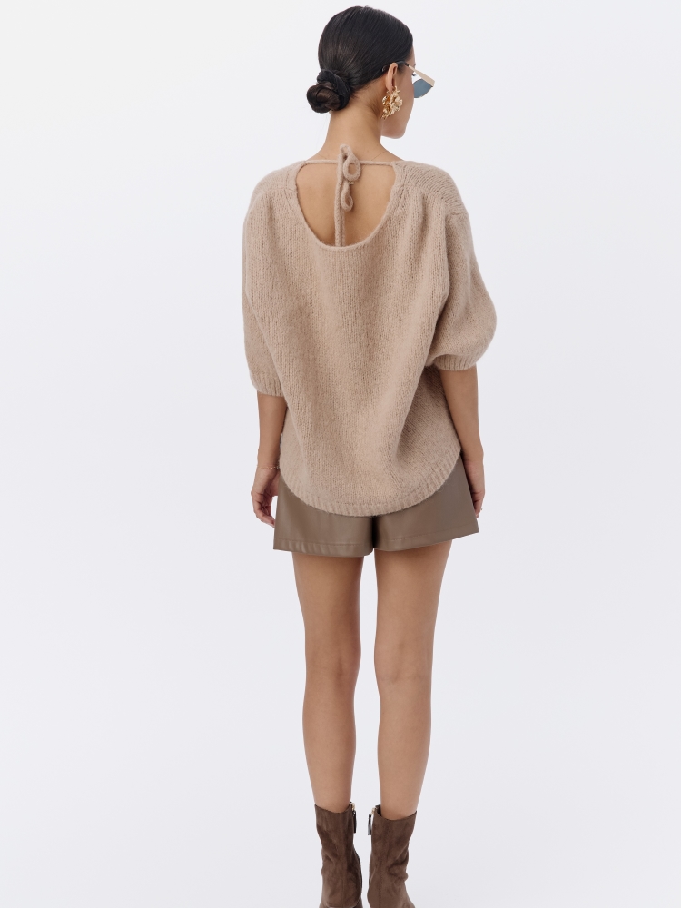 Sweter Darlen to model wykonany z dbałością o najmniejszy szczegół z przędzy wysokiej jakości. Krótkie, bufiaste rękawy wieńczą subtelne ściągacze. Niepowtarzalengo uroku dodaje mu wycięcie na pleach dopełnione efektownym wiązaniem. Polski producent Yarn Studio.