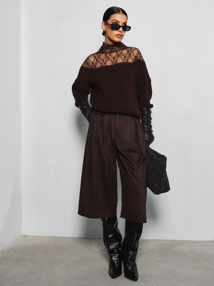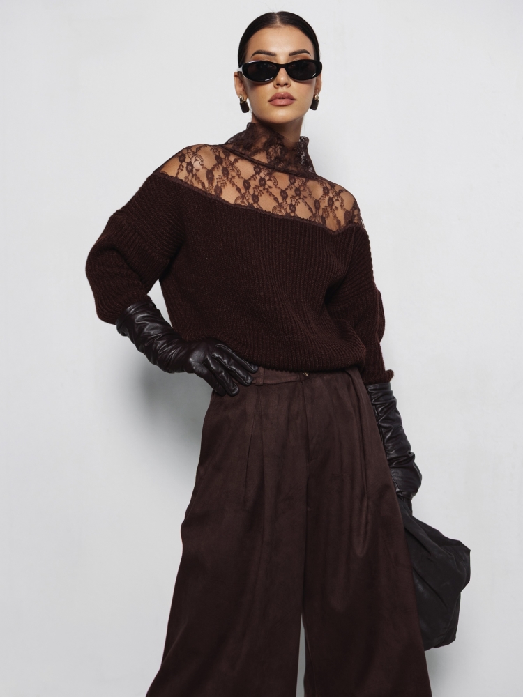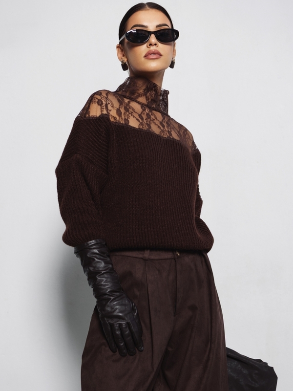 Sweter Declan to fantastyczny model z półprzezroczystą, koronkową wstawką, która znakomicie przełamuje jego klasyczny krój. Jego luźny fason równoważą ściągacze na wykończniach. Na karku znajduje się subtelne rozcięcie zapinane na praktyczne guziki. Polski producent Cocomore.