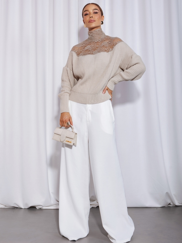 Sweter Declan to fantastyczny model z półprzezroczystą, koronkową wstawką, która znakomicie przełamuje jego klasyczny krój. Jego luźny fason równoważą ściągacze na wykończniach. Na karku znajduje się subtelne rozcięcie zapinane na praktyczne guziki. Polski producent Cocomore.