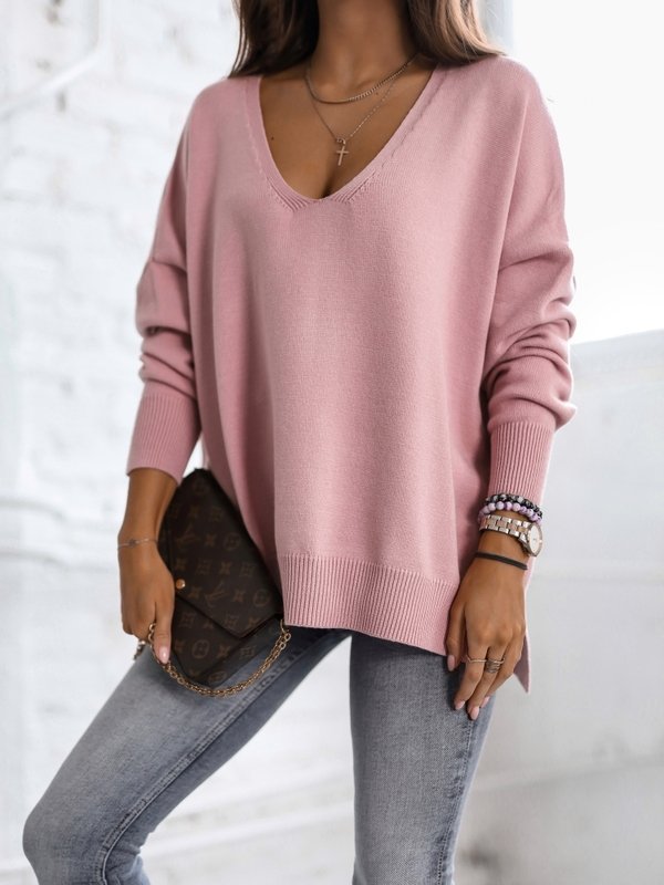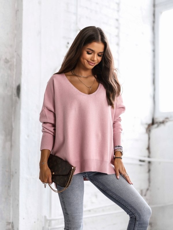 Wyjątkowy, luźny sweterek Flynn, wykonana z wysokiej jakości przędzy. Charakteru dodaje kobiecy V-dekolt. Dodatkowym atutem jest blaszka na boku i delikatne ściągacze na wykończeniach. Made in Poland.