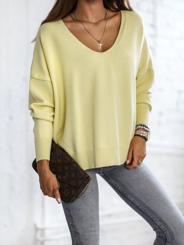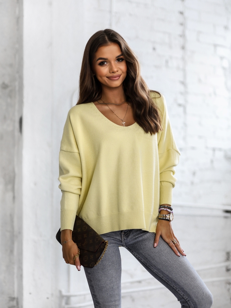 Wyjątkowy, luźny sweterek Flynn, wykonana z wysokiej jakości przędzy. Charakteru dodaje kobiecy V-dekolt. Dodatkowym atutem jest blaszka na boku i delikatne ściągacze na wykończeniach. Made in Poland.