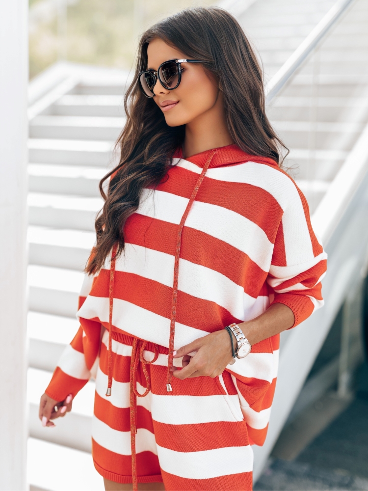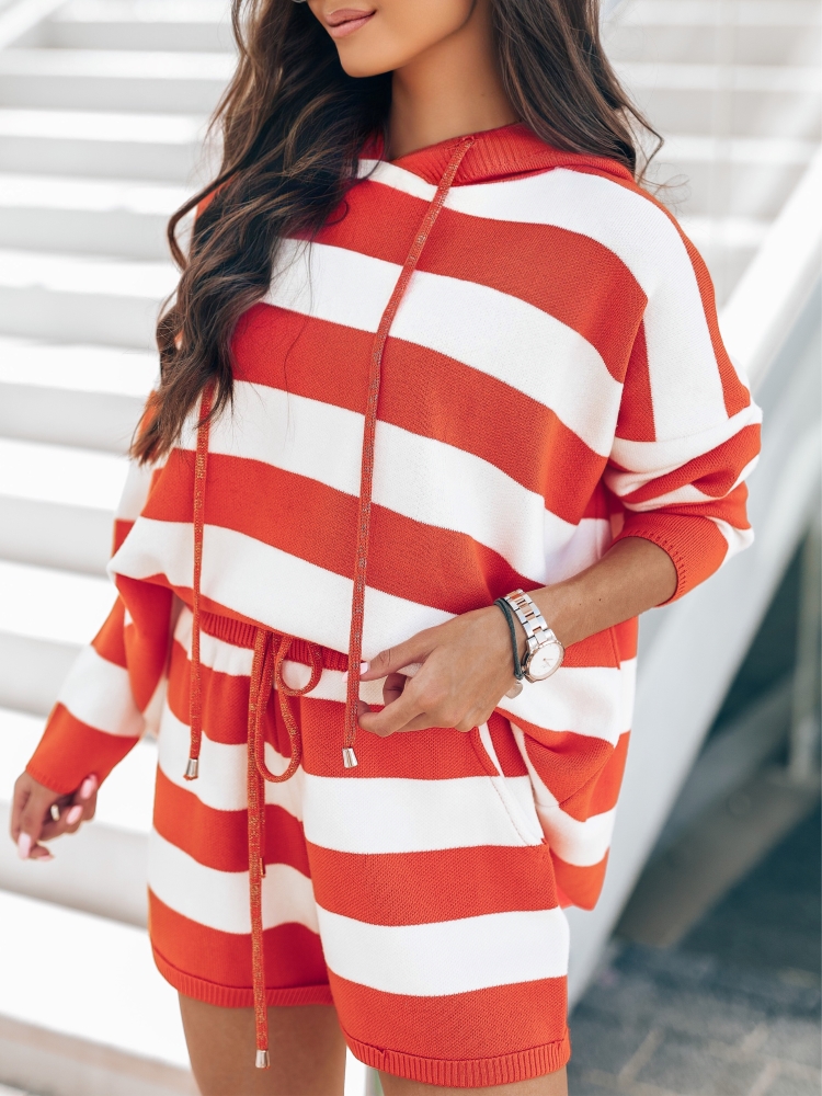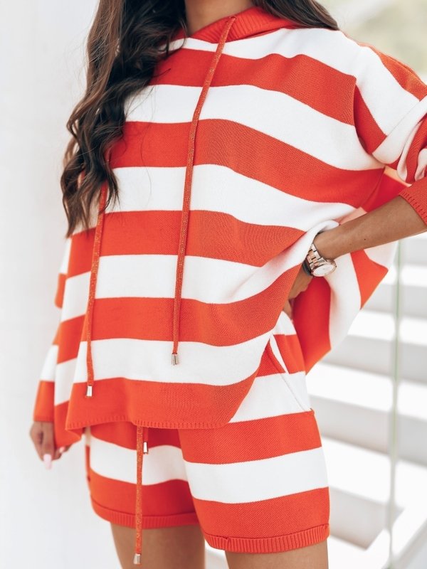 Fantastyczny, pasiasty sweter Galdar. Luźny krój zapewnia komfort i wygodę. Z tyłu znajduje się szeroki kaptur. Możesz nosić w stylizacji ze spodniami lub osobno, co pozwoli skomponować dużą ilość stylizacji. Made in Poland.