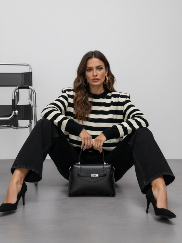 Sweter Garris to krótki sweter z gumką na dole do regulacji. Ma okrągły dekolt, sciągacze na wykończeniach i poduszki w ramiączkach, co dodaje mu wyjątkowego charakteru. Pasiasty wzór nadaje mu wyrazistego i modnego wyglądu. To modny i wygodny wybór na różne okazje, który pozwala wyrazić swoją indywidualność i czuć się stylowo. Producent Cocomore.