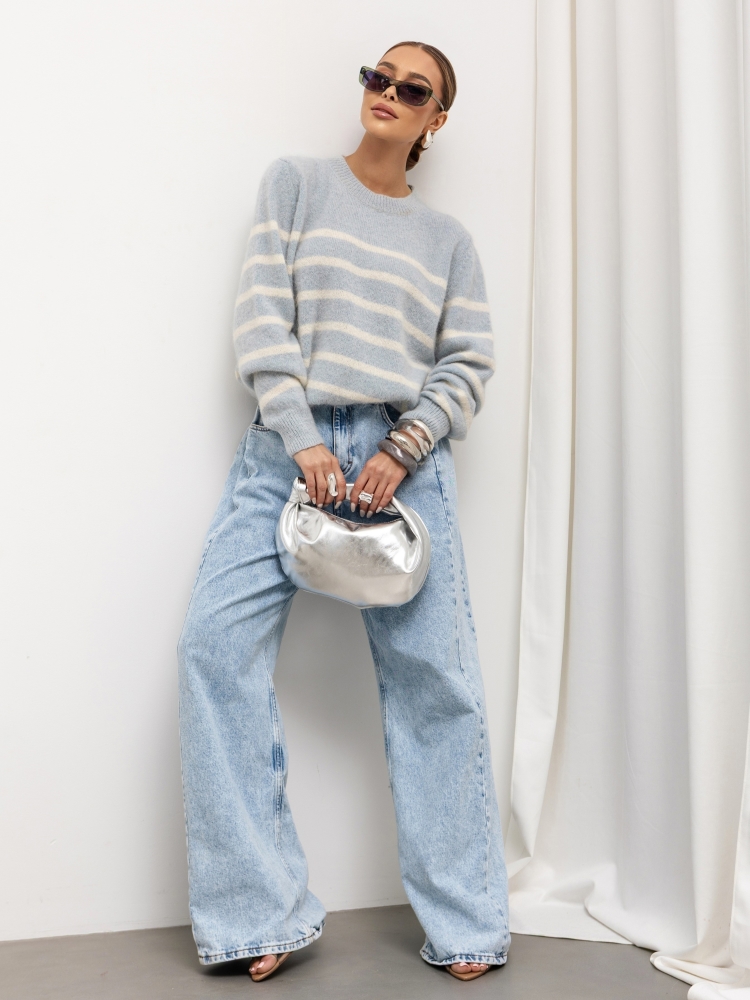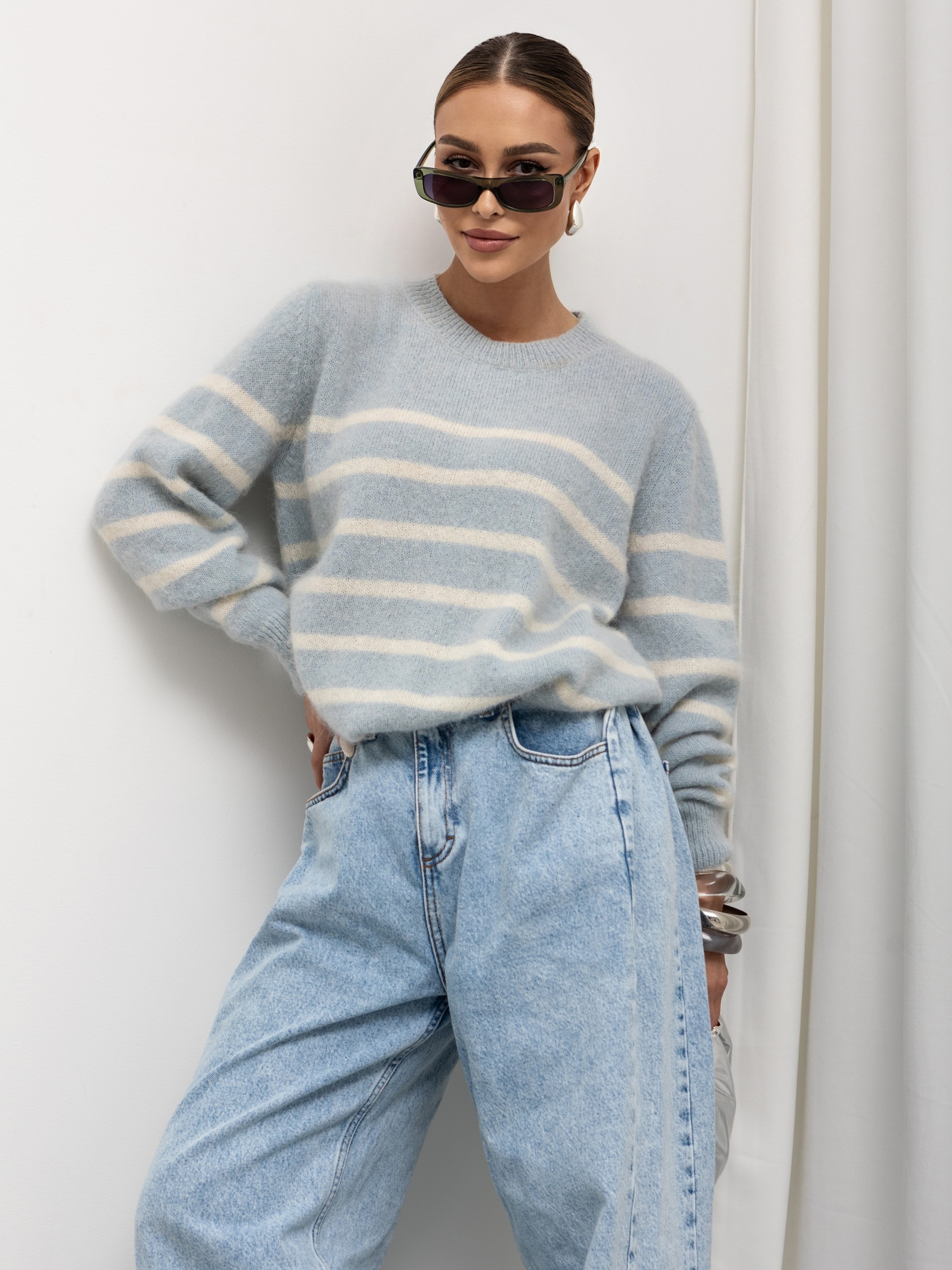 Rewelacyjny, mięsisty sweter Gellert w pasiasty print to propozcyja, która sprawdzi się przez wiele lat. Wykonany z przyjemnej w dotyku przędzy wysokiej jakości. Dodatkowym atutem są ściągacze na wykończeniach. Polski producent Yarn.