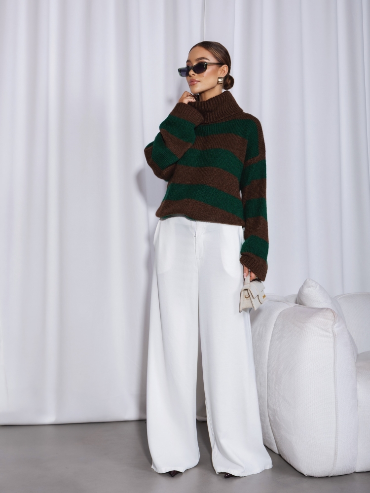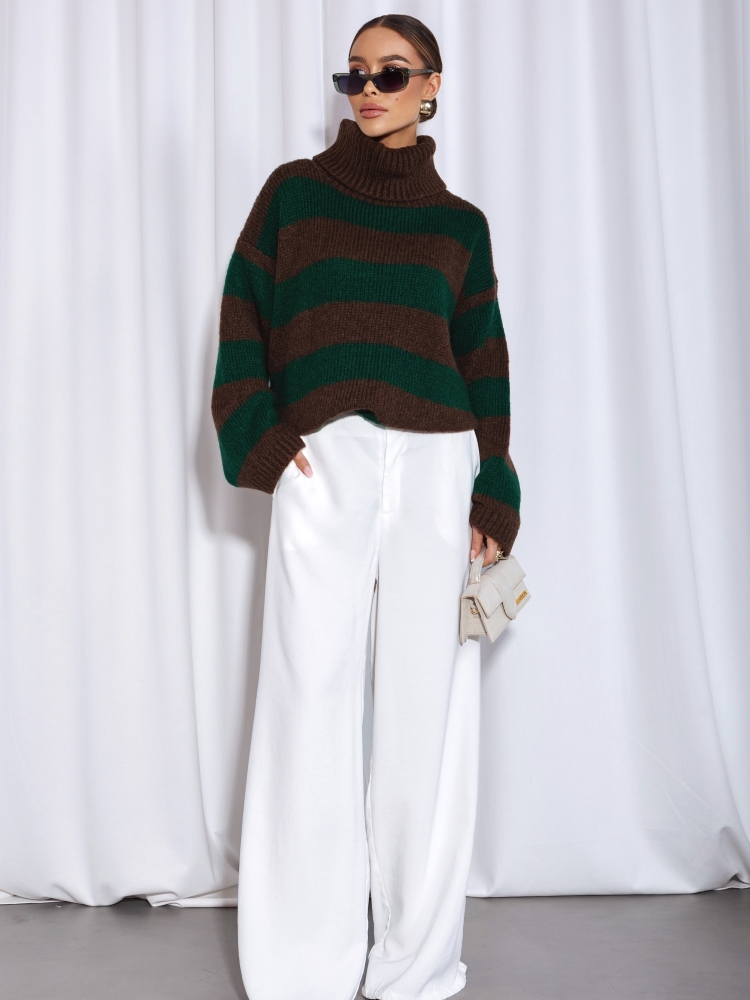 Wyjątkowy sweter Kamos, wykonany wysokiej jakości przędzy. Niezwykle przyjemny w dotyku. Luźny krój zapewni komfort noszenia. Dzięki ściągaczom na wykończeniach, możemy dopasować długości według własnych upodopań. Całość wieńczy komfortowy golf. Polski producent Cocomore.