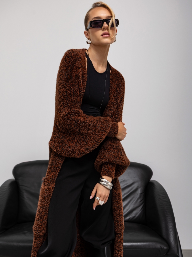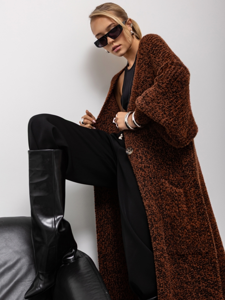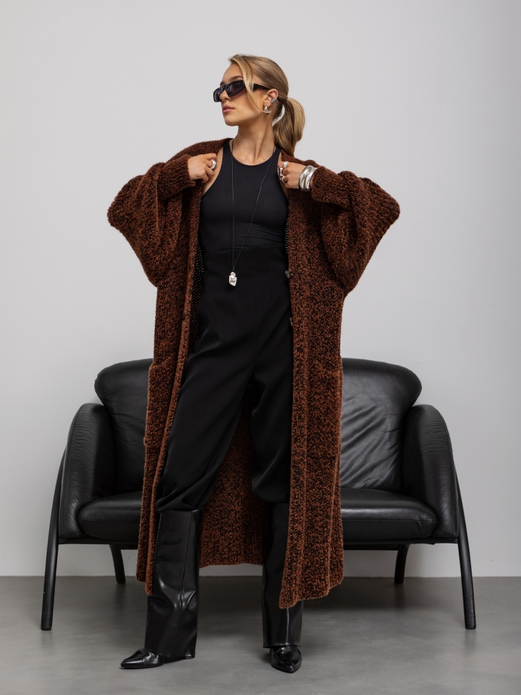 Genialny, sweterkowy kardigan Lavar Grey, wykonany z kolorowej przędzy. Świetnie zastąpi zarówno jesienno-zimowy płaszcz, jak i klasyczny kardigan. Zapinany na szerokie guziki. Dodatkowym atutem są pojemne kieszenie i bufiaste rękawy wykończone ściągaczem. Długość maxi to ostatni trend, który podbija światowe wybiegi. Made in Poland. Producent Cocomore.