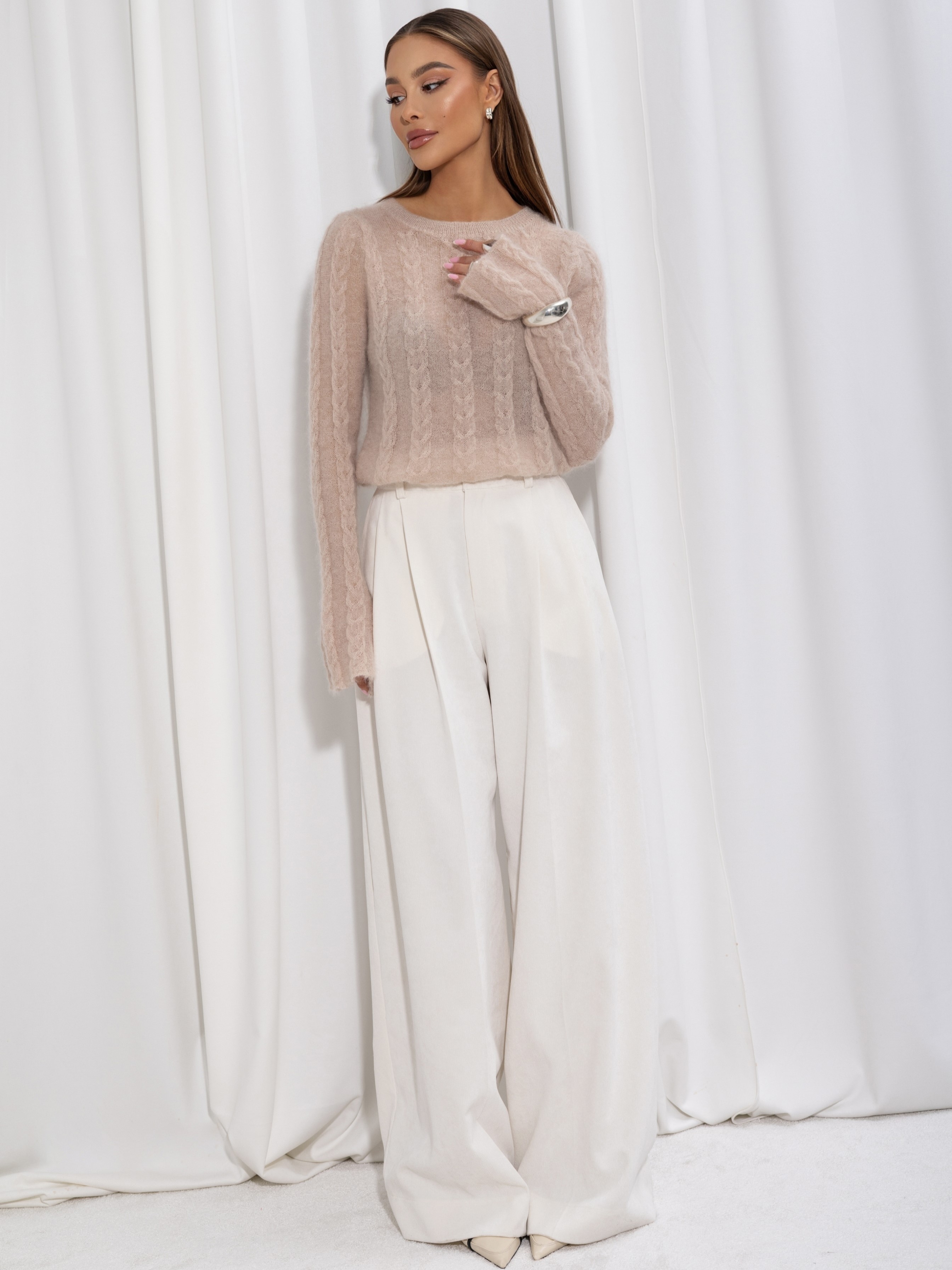 Sweter Loris to efektowna propozycja, która zachwyci każdą kobietę. Zdobiony warkoczowym splotem. Zachwyca swoją delikatnością i elegancją. Okrągły dekolt doskonale sprawdzający się w różnych stylizacjach. Całość dopełniają rozszerzane rękawy. Made in Poland.