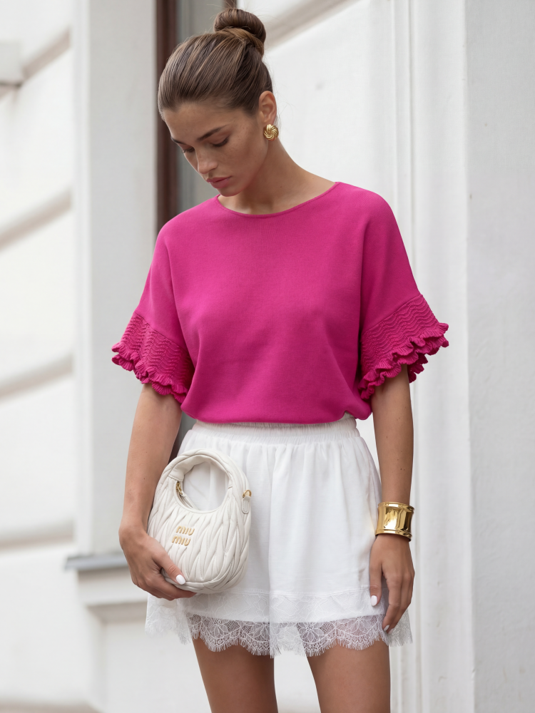 Genialny sweterek Magnus wykonany z wysokiej jakości przędzy. Szyku dodają osdobne rękawy wykończone falbanką, która dodaje mu wyjątkowego uroku. Uniwersalna, niebanalna opcja do wielu stylizacji. Made in Poland. Producent Cocomore. Prezentacja produktu wykorzystuje wizualizacje AI.