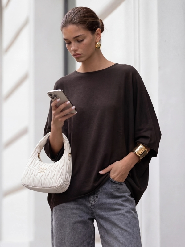 Sweter Nathaniel to nasz hitowy oversize'owy sweterek o kroju nietoperza. Jego fason zapewni komfort i swobodę noszenia. Wykonany z wysokiej jakości przędzy. Znakomicie sprawdzi się jako uzupełnienie stylizacji w nadchodzącym sezonie. Polski producent Yarn Studio. Prezentacja produktu wykorzystuje wizualizacje AI.