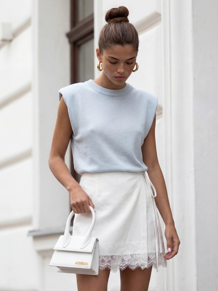 Sweter Perrin to modna bluzka sweterkowa o krótkim kroju, wykońćzona ściągaczem na dole. Okrągły dekolt i poduszki na ramionach dodają mu wyjątkowego charakteru. Jest idealny na różne okazje, łącząc modny wygląd z wygodą noszenia. Dół zdobi naszywka z logo producenta. Doskonały sweter podkreślający indywidualny styl i zapewniający komfort użytkowania. Producent Cocomore. Prezentacja produktu wykorzystuje wizualizacje AI.
