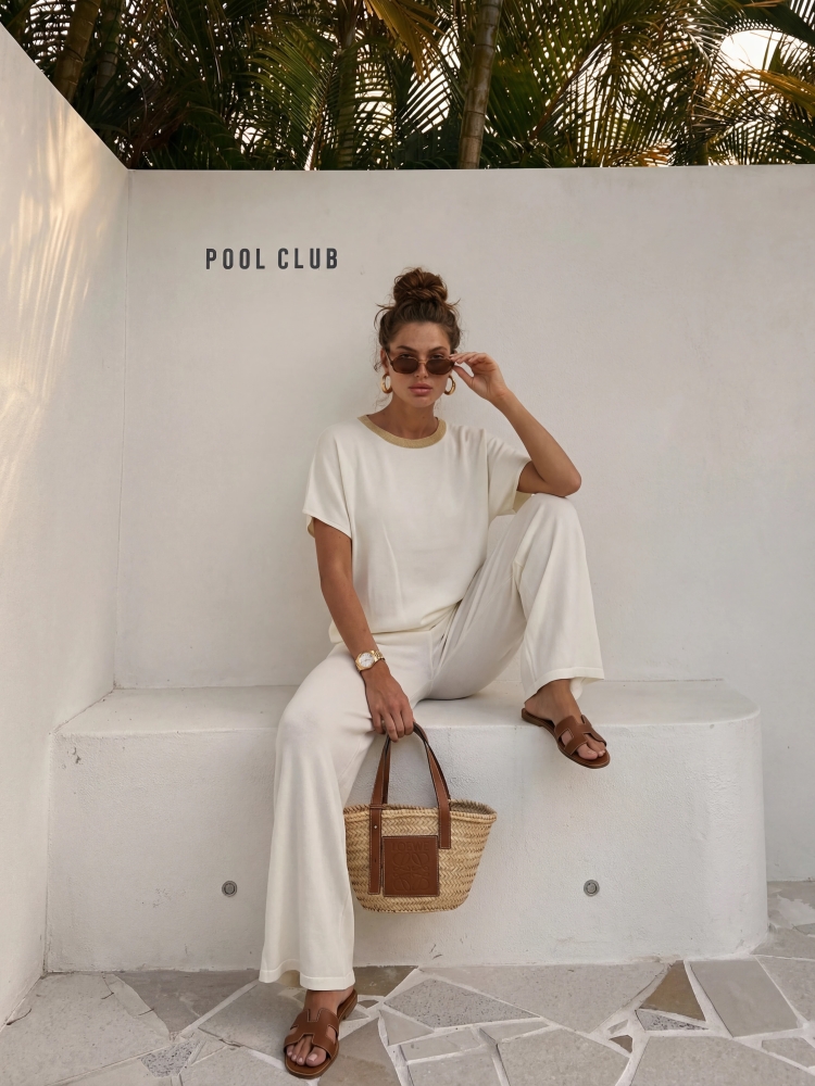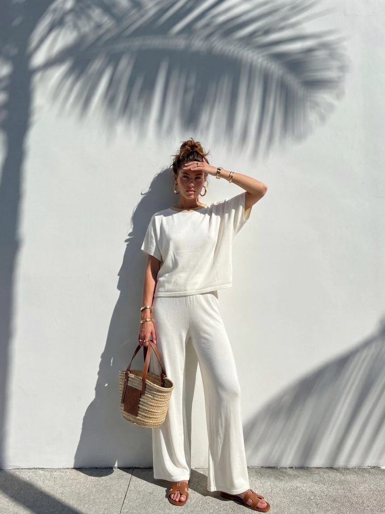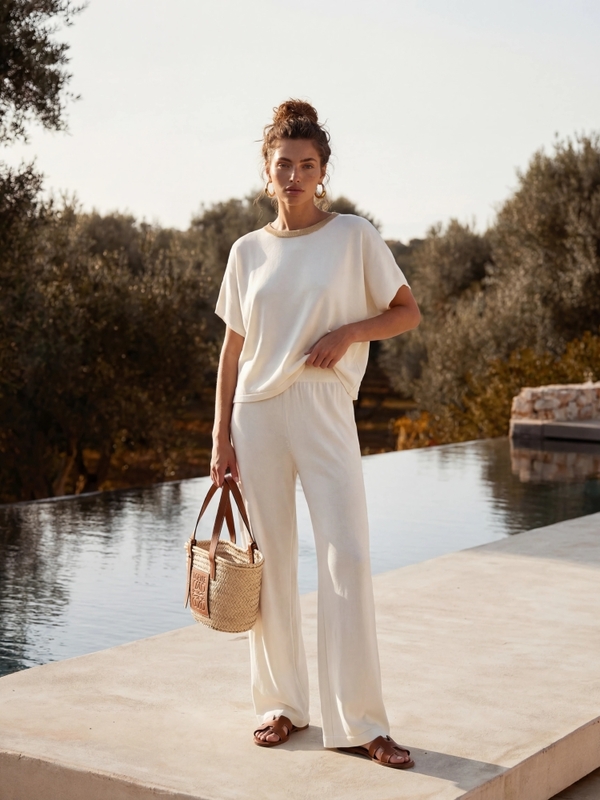 Efektowny sweterek Semih , wykonany z wysokiej jakości przędzy. Luźny krój zapewnia komfort i wygodę. Dodatkowym atutem jest kontrastujący lampas. Świetnie sprawdzi się na nadchodzące dni. Wystylizuj ze spodniami widocznymi na zdjęciu. Polski producent Yarn Studio. Prezentacja produktu wykorzystuje wizualizacje AI.
