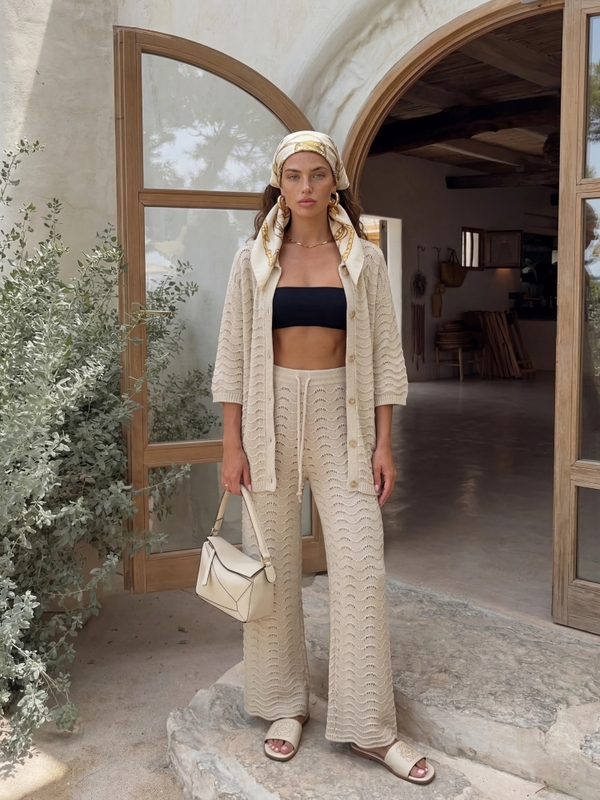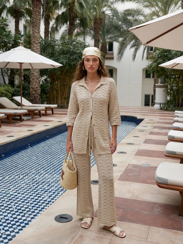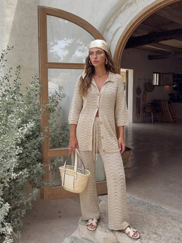 Sweter Terrence Wave to lekki, ażurowy model o luźnym kroju oversize, który zapewnia komfort i swobodny styl. Zapinany na drewniane guziki, z wykończeniem w postaci ściągaczy, świetnie sprawdzi się w codziennych stylizacjach. Prezentacja produktu wykorzystuje wizualizacje AI.