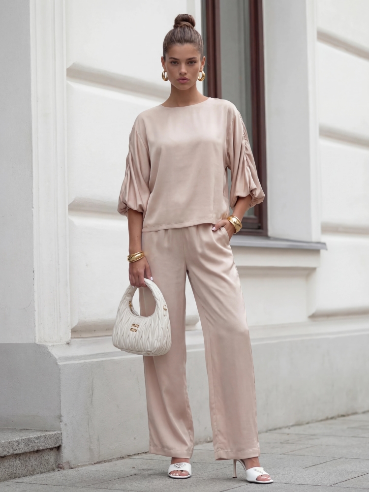 Oversize'owa bluzka Aziz wykonana ze zwiewnego materiału zapewni wygodę podczas noszenia. Ramiona zdobią marszczenia. Dodatkowo, rękawy zostały wykończone ściągaczami. Wystylizuj ze spodniami o tej samej nazwie. Polski producent Cocomore. Prezentacja produktu wykorzystuje wizualizacje AI.