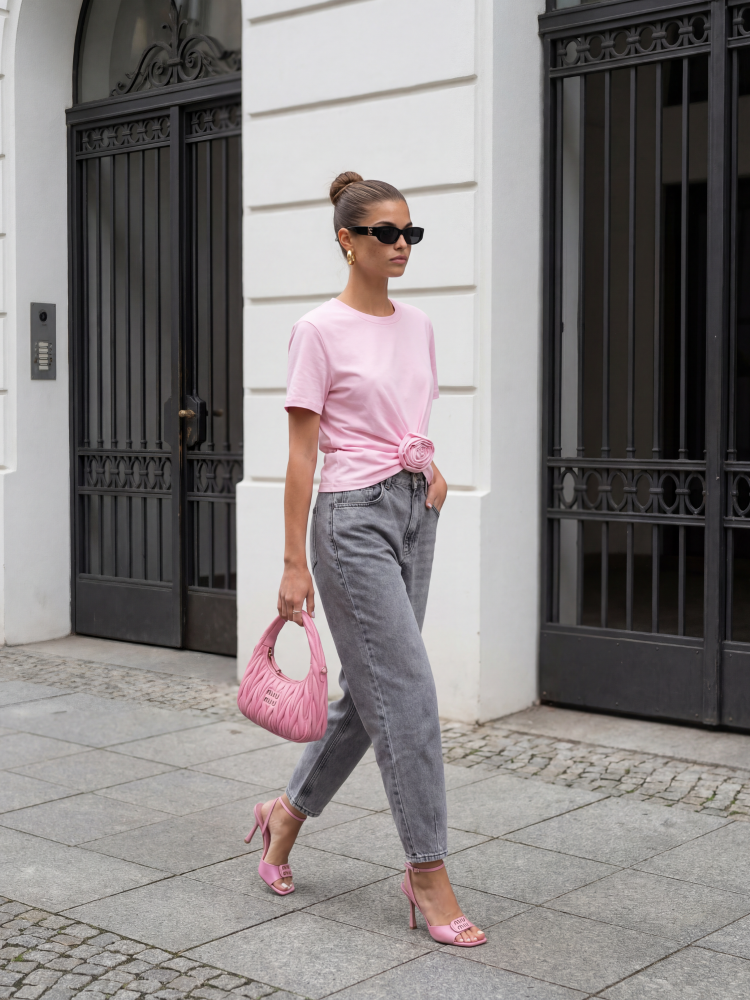 Bluzka Donnie to urocza i elegancka propozycja na każdą okazję. Jej okrągły dekolt dodaje subtelności i klasy. Dół wykończony jest marszczeniem z naszytym kwiatem, dodając bluzce delikatności. Idealne ułożenie na sylwetce zapewnią poduszki na ramionach. Prezentacja produktu wykorzystuje wizualizacje AI.