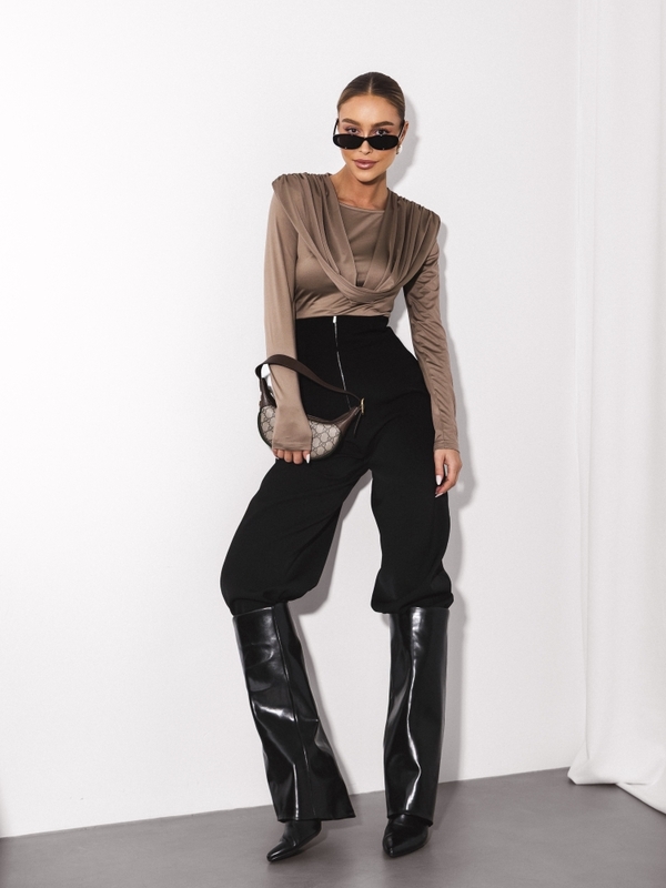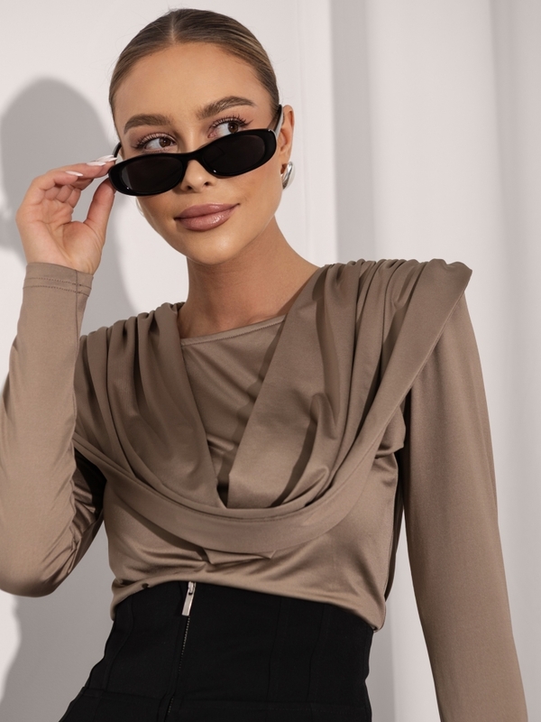 Urocza bluzka Malena z półokrągłym dekoltem, dopełnionym szarfą. Na ramionach znajdują się poduszki, które zapewnią idealne dopasowanie do sylwetki. Wykonana z wysokiej jakości, elastycznego materiału. Polski producent Cocomore.