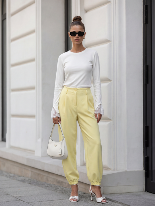 Prążkowana bluzka Pauline, to niezwykle kobiecy model, który z powodzeniem uzupełni każdą stylizację. Jej klasyczny krój, znakomicie dopełniają wyrafinowane koronki na wykończeniach rękawów, dodając jej niepowtarzalnego uroku. Prezentacja produktu wykorzystuje wizualizacje AI.