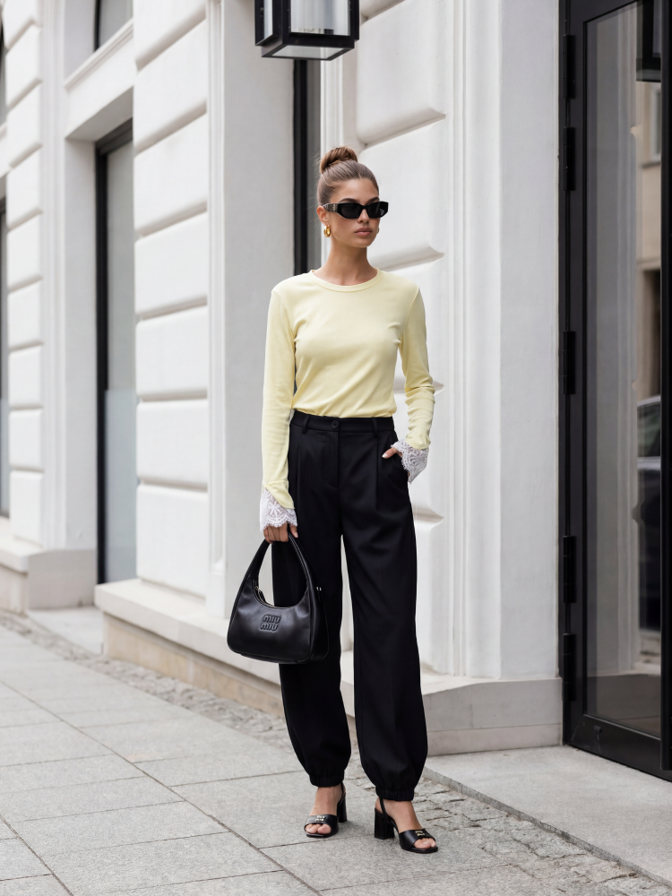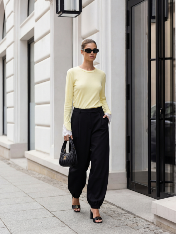 Prążkowana bluzka Pauline, to niezwykle kobiecy model, który z powodzeniem uzupełni każdą stylizację. Jej klasyczny krój, znakomicie dopełniają wyrafinowane koronki na wykończeniach rękawów, dodając jej niepowtarzalnego uroku. Prezentacja produktu wykorzystuje wizualizacje AI.