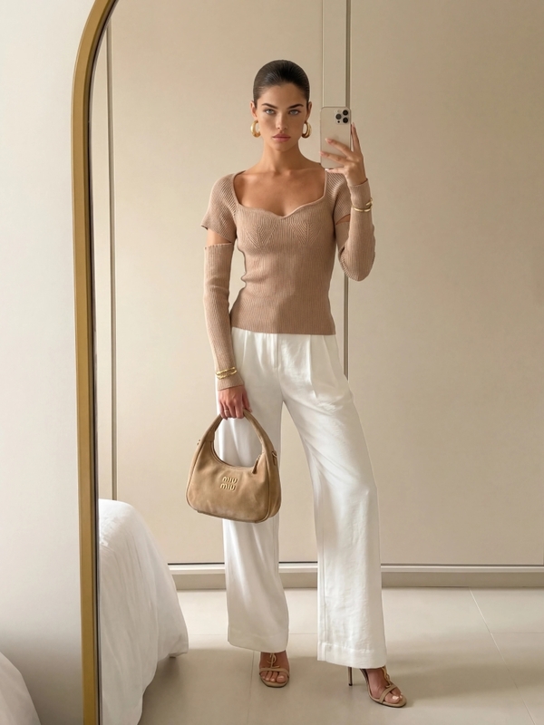 Uniwersalna, prążkowana bluzka Viorela, wykonana z wysokiej jakości materiału. Charakteru dodaje oryginalny dekolt. Dodatkowym atutem są kobiece rozcięcia na ramionach. Świetnie uzupełni stylizacje na każdą porę roku. Produkt z importu. Prezentacja produktu wykorzystuje wizualizacje AI.