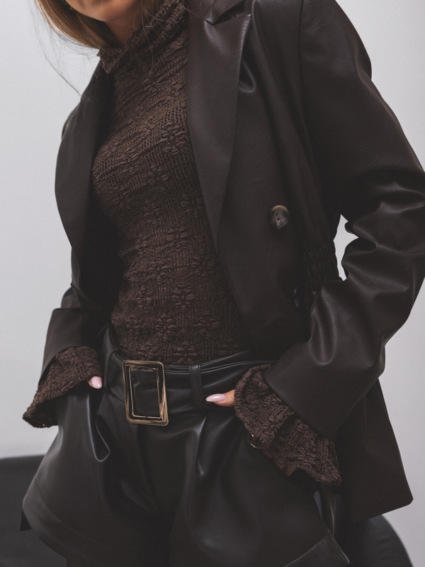 Niezwykle kobiecy golf Desiro, wykonany z półprzezroczystego, kornokowego materiału. Całość dopełniają fantastyczne rękawy wykończone falbanami. Znakomicie sprawdzi się jako baza do wielu stylizacji. Polski producent Cocomore.