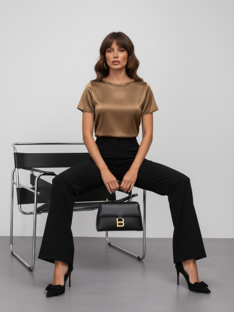 T-shirt Amador to klasyczny t-shirt o luźnym kroju i okrągłym dekolcie, wykonany z wysokiej jakości wiskozowego materiału z domieszką elastanu. Świetnie sprawdzi się jako baza stylizacji. Producent Yarn Studio.