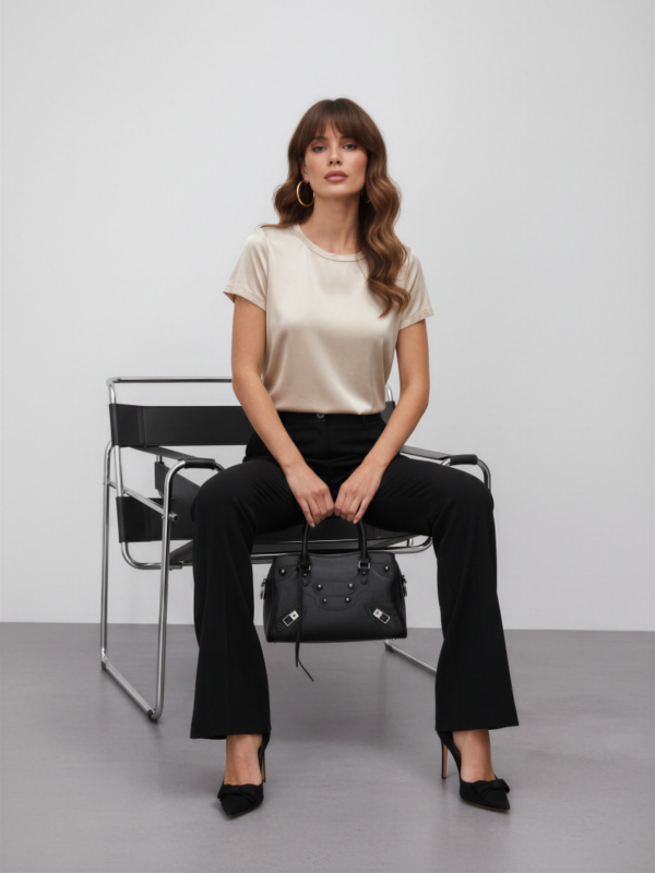 T-shirt Amador to klasyczny t-shirt o luźnym kroju i okrągłym dekolcie, wykonany z wysokiej jakości wiskozowego materiału z domieszką elastanu. Świetnie sprawdzi się jako baza stylizacji. Producent Yarn Studio.