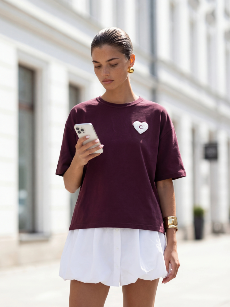 Nowoczesny t-shirt Atley to wygodny fason oversize, wykonany z wysokiej jakości bawełnianego materiału z domieszką elastanu. Przód zdobi naszyta aplikacja, dodając całości niepowtarzalnego uroku. Dodatkowo całość dopełnia klasyczny, okrągły dekolt. Polski producent Cocomore. Prezentacja produktu wykorzystuje wizualizacje AI.