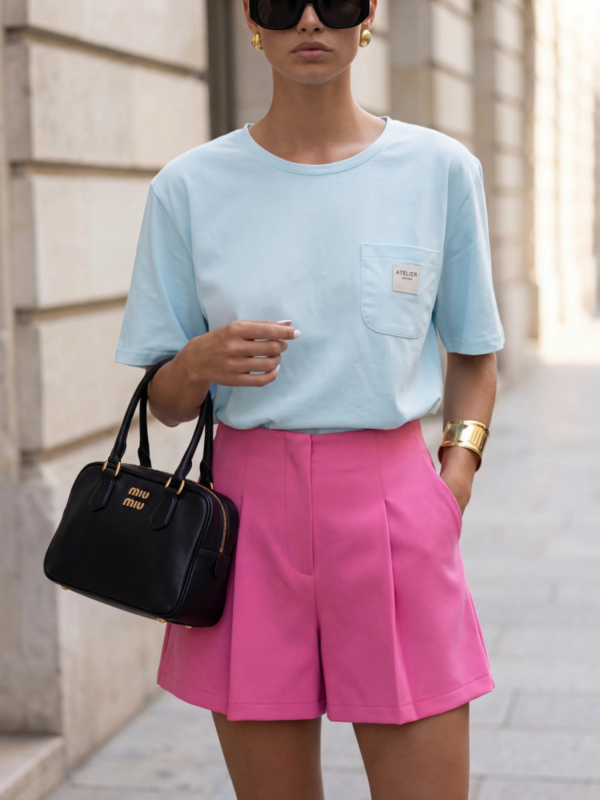 Nowoczesny t-shirt Dessi o luźnym kroju, wykonany z wysokiej jakości materiału. Klasyczny fason urozmaica podkreślona poduszkami linia ramion i praktyczna kieszonka z przodu. Wyjątkowa baza codziennych stylizacji. Made in Poland. Producent Cocomore. Prezentacja produktu wykorzystuje wizualizacje AI.